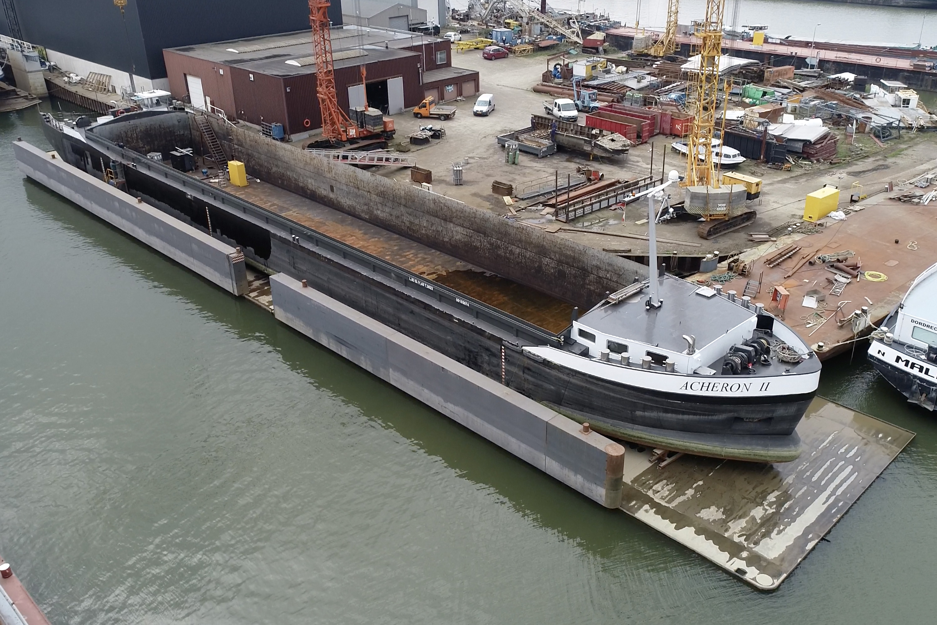 Twee onafhankelijke dokken maken het mogelijk om schepen of bakken te verlengen of juist in te korten